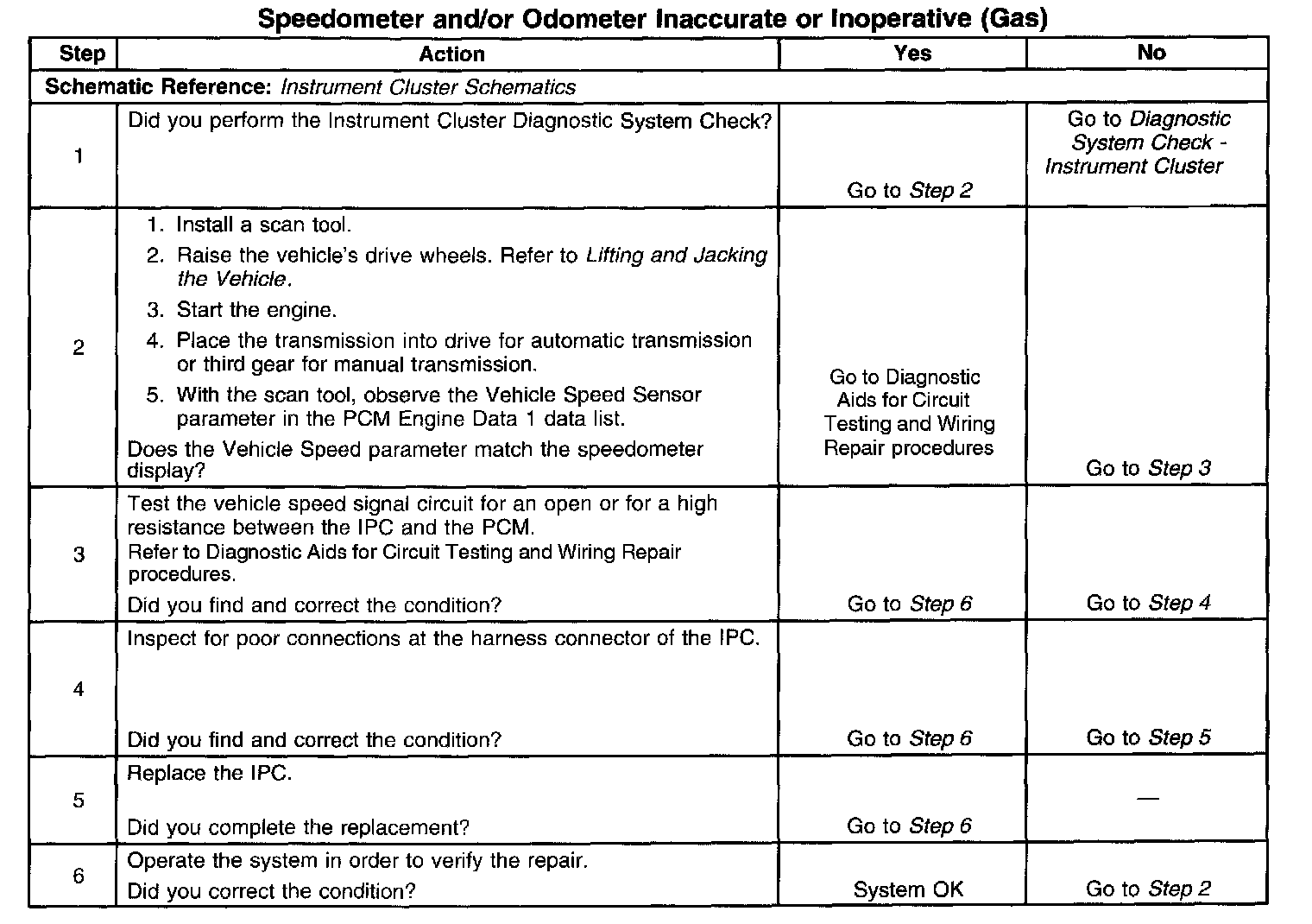 Speedometer and/or Odometer Inaccurate or Inoperative