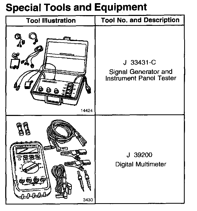Instrument Panel, Gauges and Warning Indicators: Tools and Equipment