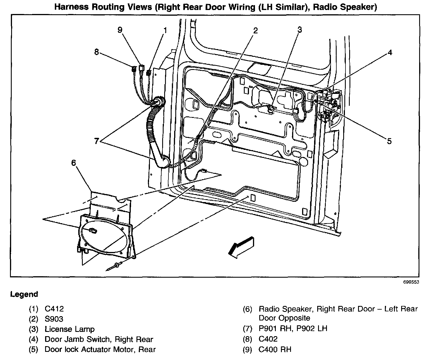 Harness Routing Views (Right Rear Door Wiring (LH Similar), Radio Speaker):