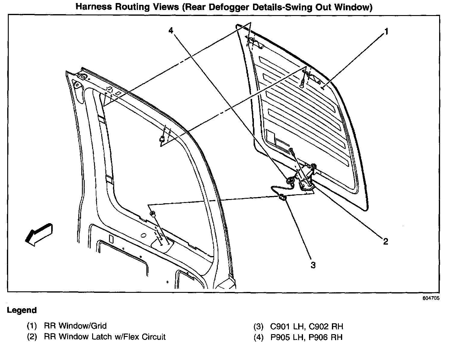 Harness Routing Views (Rear Defogger Details-Swing Out Window):