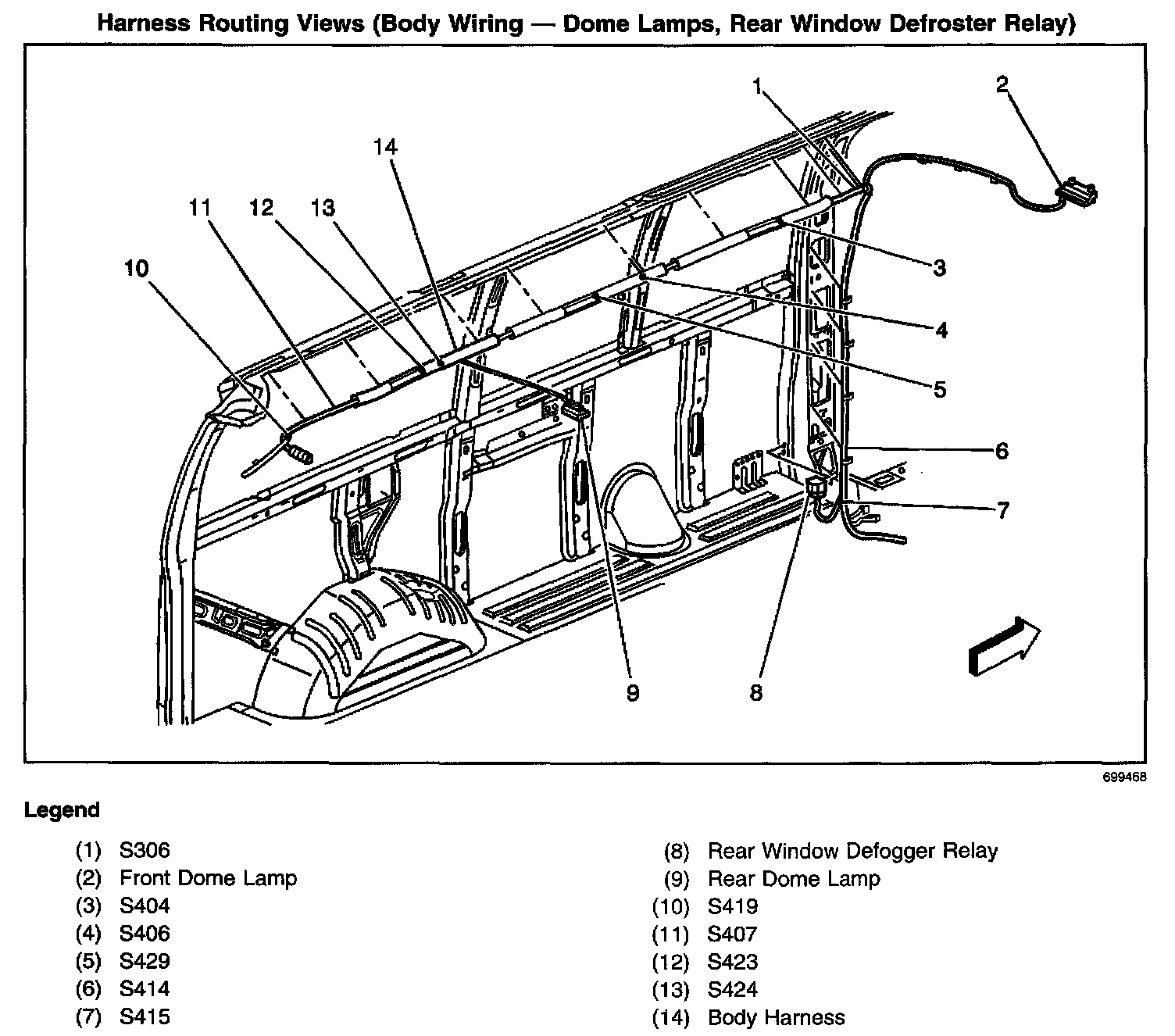 Harness Routing Views (Body Wiring - Dome Lamps, Rear Window Defroster Relay):