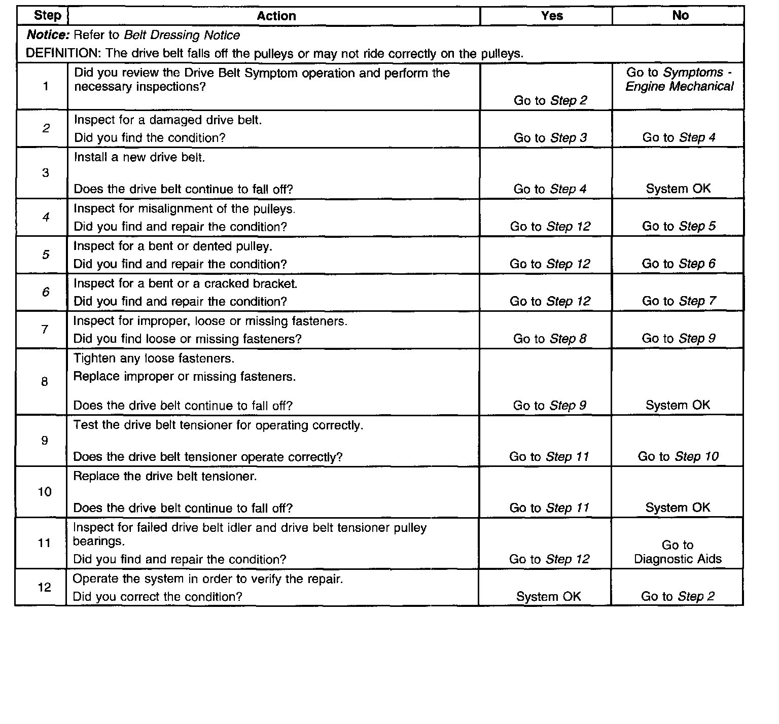 Drive Belt Falls Off DiagnosisDiagnostic Aids