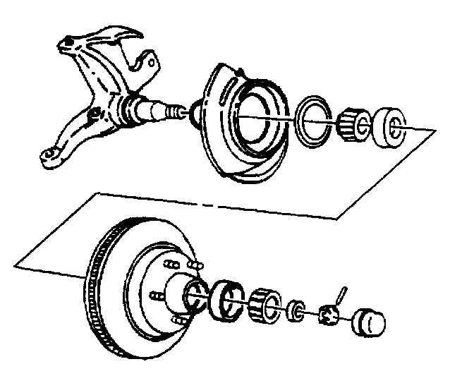^ Apply an approved high-temperature front wheel bearing grease to the spindle at the inner and outer bearing seat, the shoulder, and the seal seat.