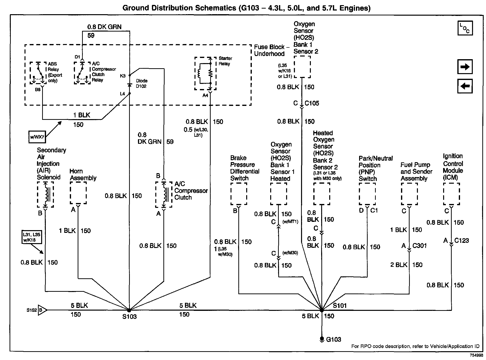 Ground Distribution Schematics: G103 - 4.3L, 5.0L, And 5.7L Engine:
