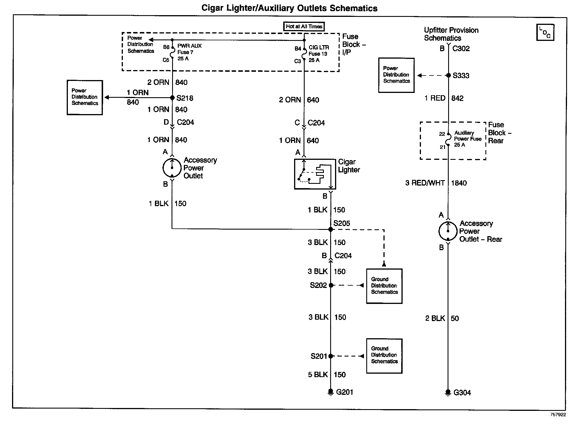 Cigar Lighter/Auxiliary Outlets Schematics: