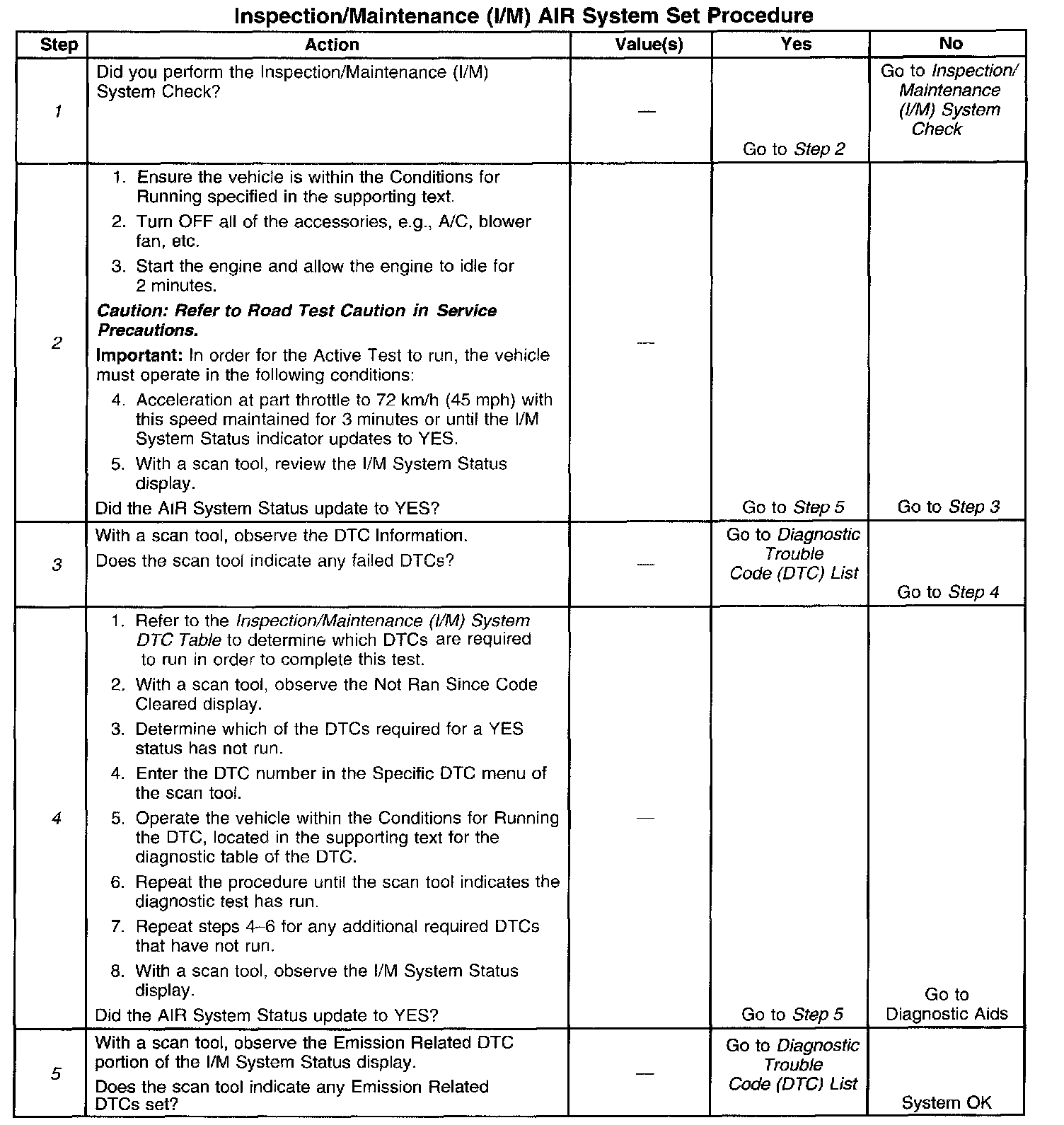 I/M AIR System Set Procedure