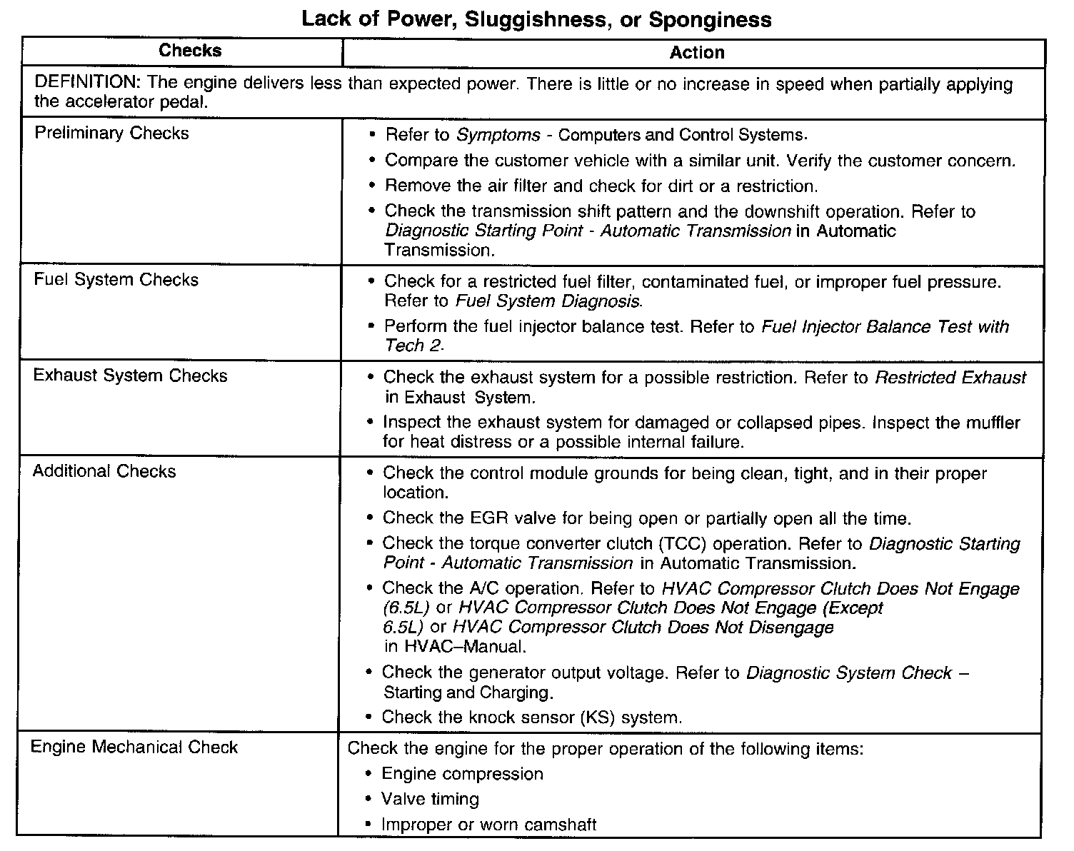 Lack of Power, Sluggishness, or Sponginess