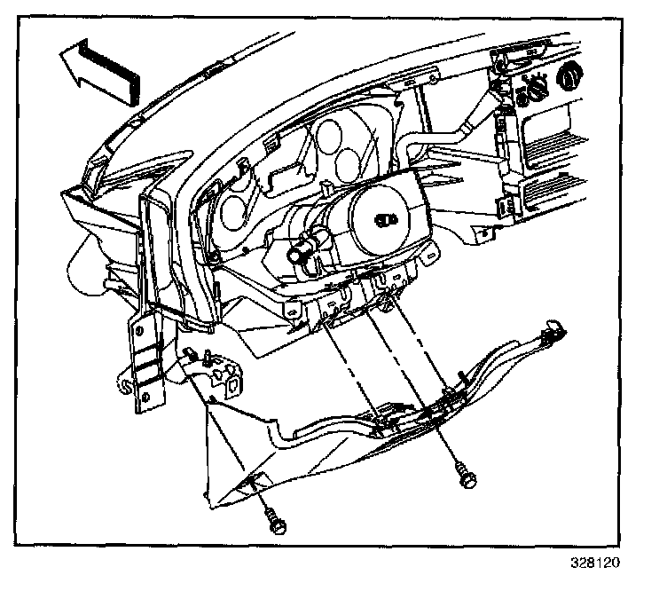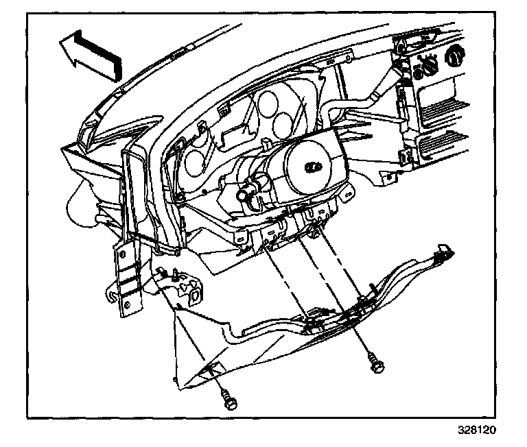 4. Remove the bolts at the lower edge of the instrument panel driver knee bolster panel.