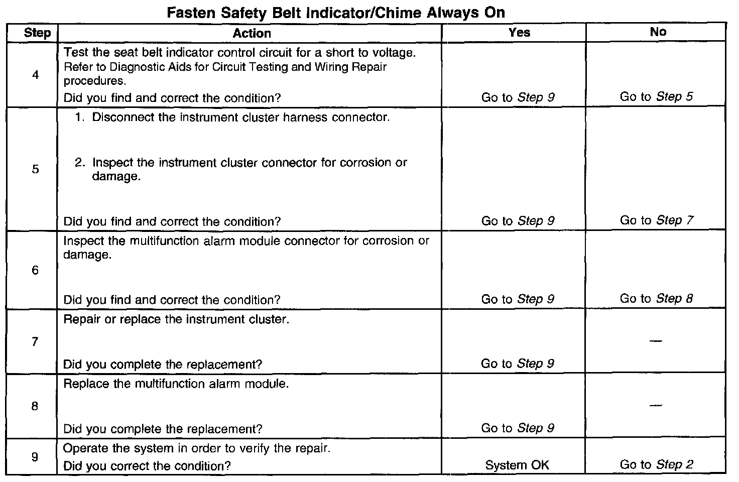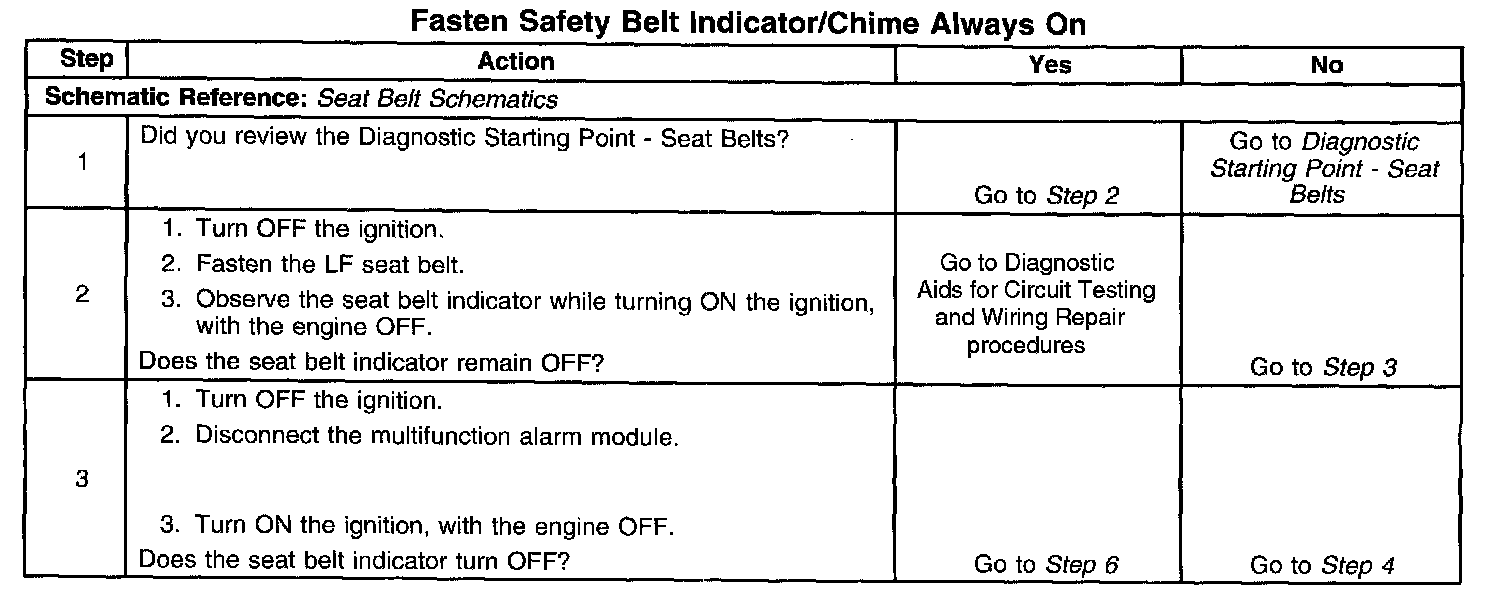 Fasten Safety Belt Indicator/Chime Always On