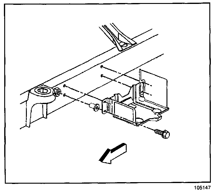 4. Remove the auxiliary battery hold-down retainer bolt.