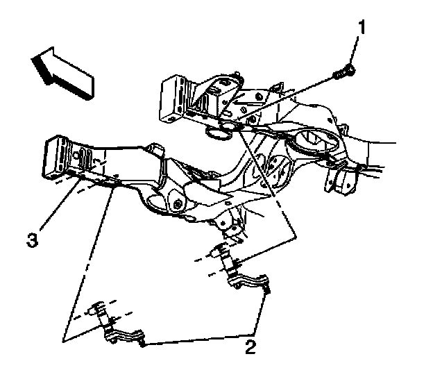4. Remove the idler arm retaining nuts to disconnect the idler arm assembly (2) from the frame support (3).