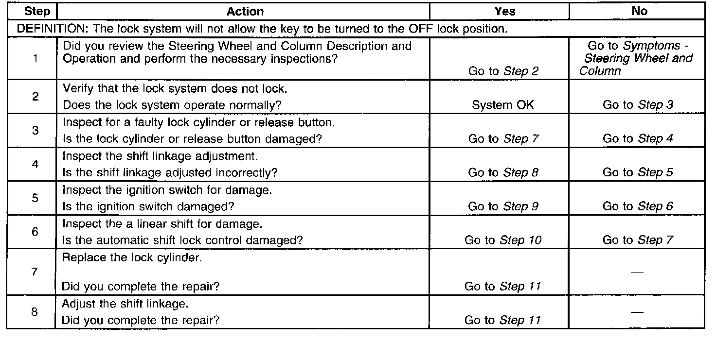 A/T Shift Lock, Lock System Does Not Lock