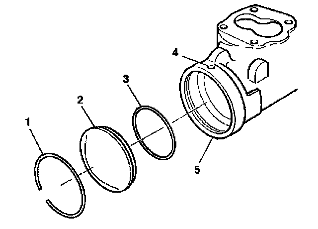 4. Install the retaining ring (1). Ensure that the retaining ring open end is approximately 25 mm (1 inch) from the access hole in the steering gear housing (5).