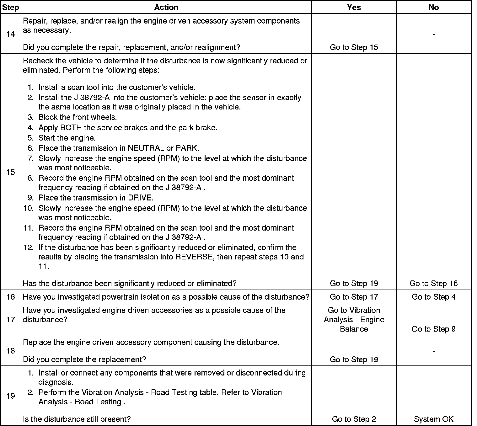 If a disturbance is still present, but the characteristics have NOT been altered, it is NOT likely that these component systems are acting as a transfer path for engine firing frequency or a first order engine disturbance.