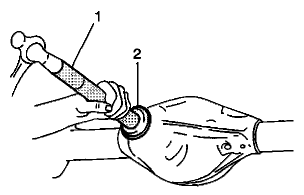 1. Install the outer pinion bearing cup using the J8611-01 (8.6 inch axle) (2), or the J7818 (9.5 inch axle) (2) and the J8092 (1).