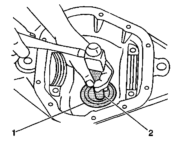 2. Install the inner pinion bearing cup using the J8608 (8.6 inch axle) (2), or the J22306 (9.5 inch axle) (2) and the J8092 (1).