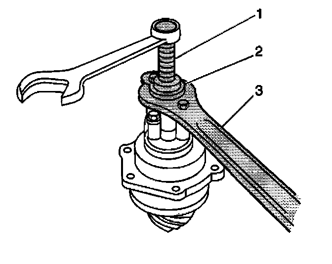 16. Remove the pinion yoke by turning the J8614-3 (1) clockwise while holding the J8614-01 (3).