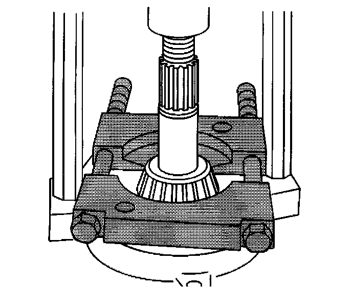 21. Remove the inner pinion bearing from the pinion using the J22912-01 and a hydraulic press.