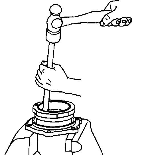 22. Remove the outer pinion bearing cup using a hammer and a brass drift in the slots provided.