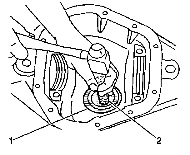 1. Install the outer pinion bearing cup using the J22306 (2) and the J8092 (1).
