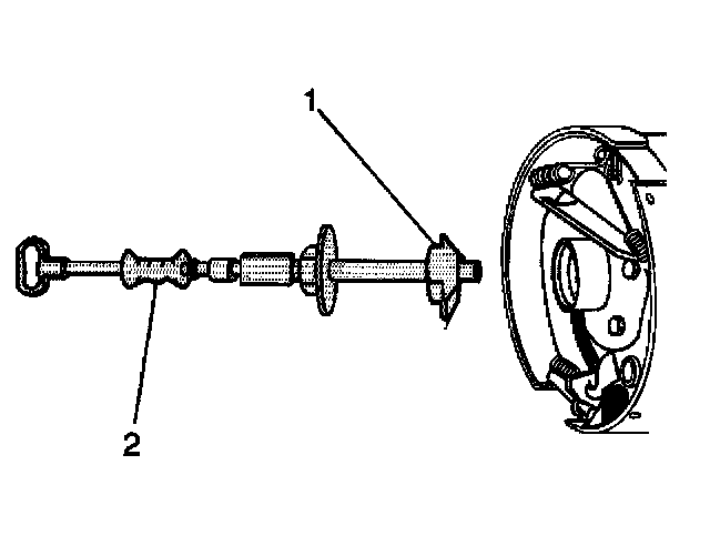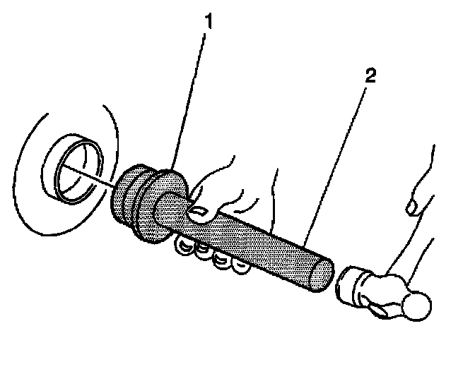1. Install the axle shaft bearing using the J23690 (8.6 inch axle) (1) or the J29709 (9.5 inch axle) (1) and the J8092 (2).