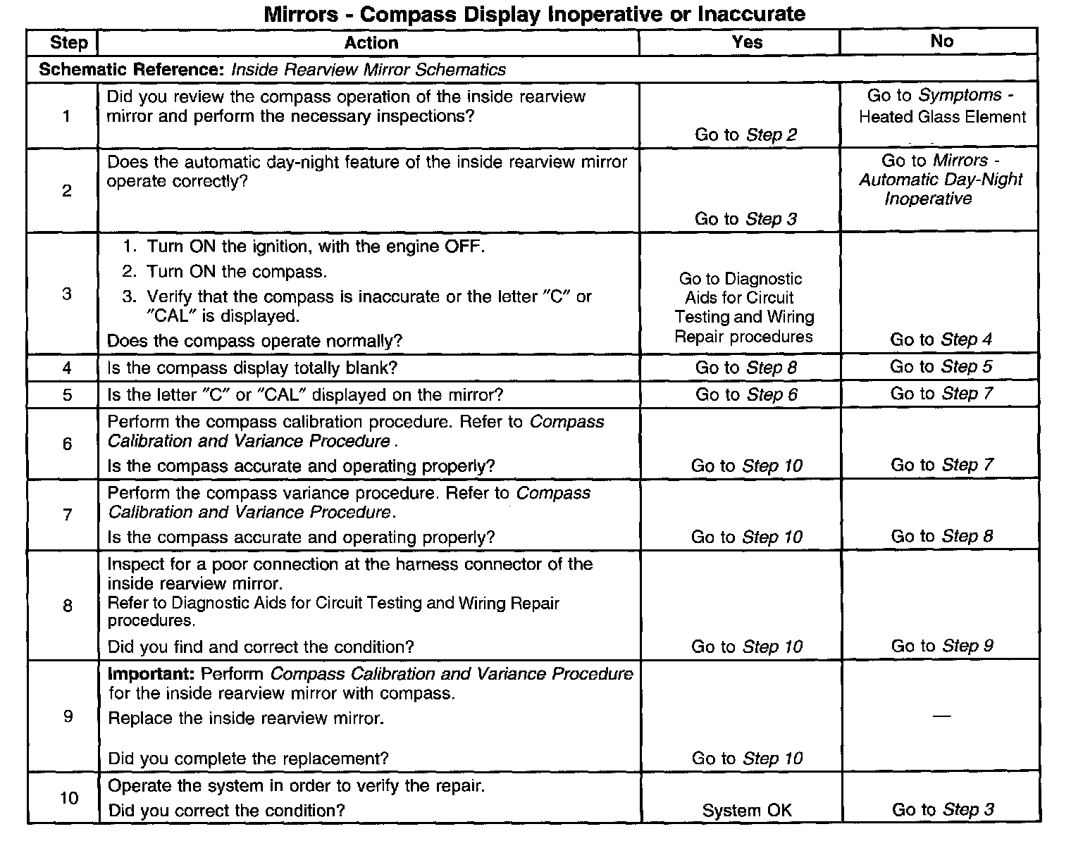 Compass Display Inoperative Or Inaccurate - Mirrors