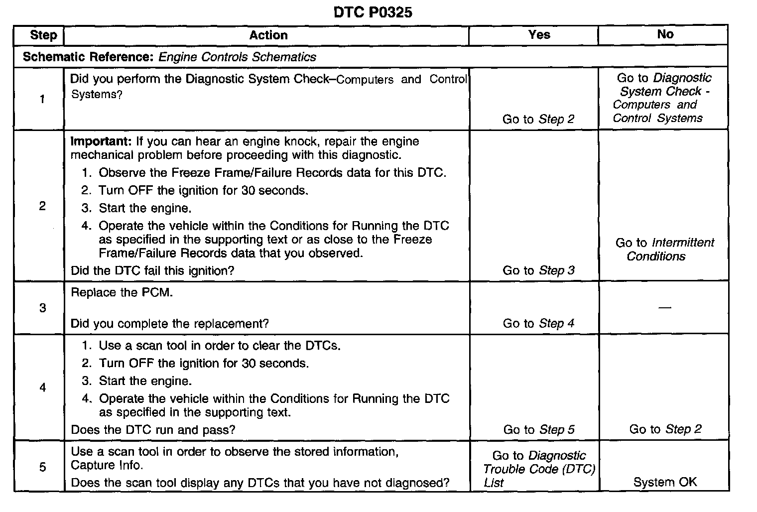 CIRCUIT DESCRIPTIONThe knock sensor (KS) produces an AC voltage at all engine speeds and loads. The powertrain control module (PCM) then adjusts the spark timing based on the amplitude and frequency of the KS signal. The PCM uses the KS signal to calculate the average voltage. Then the PCM assigns a voltage value. The PCM checks the KS and related wiring by comparing the actual knock signal to the assigned voltage range. A normal KS signal should stay within the assigned voltage range. This diagnostic trouble code (DTC) will set if the PCM malfunctions in a manner that will not allow proper diagnostics of the KS system.