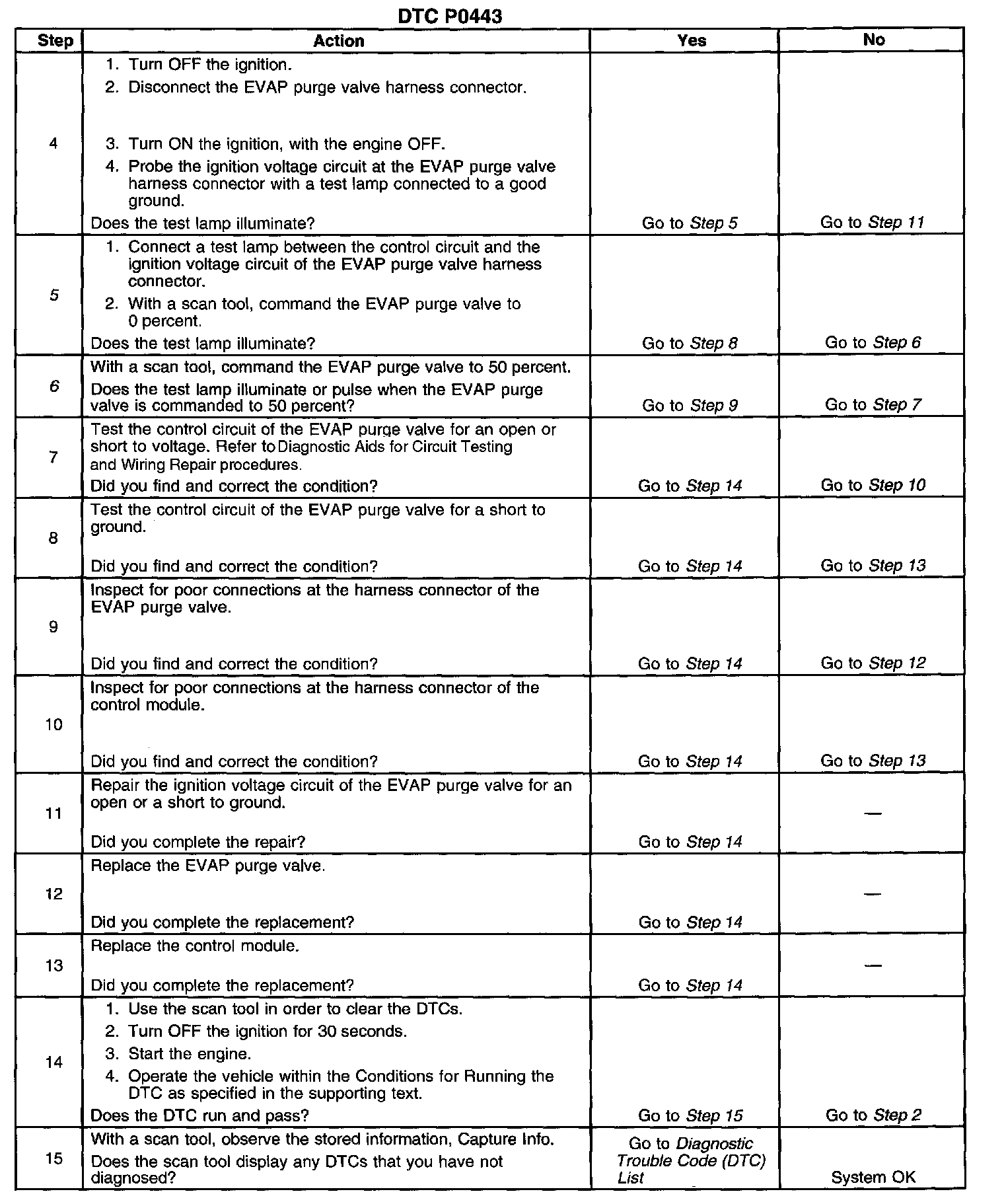5. This step tests if a ground is constantly being applied to the EVAP purge valve.