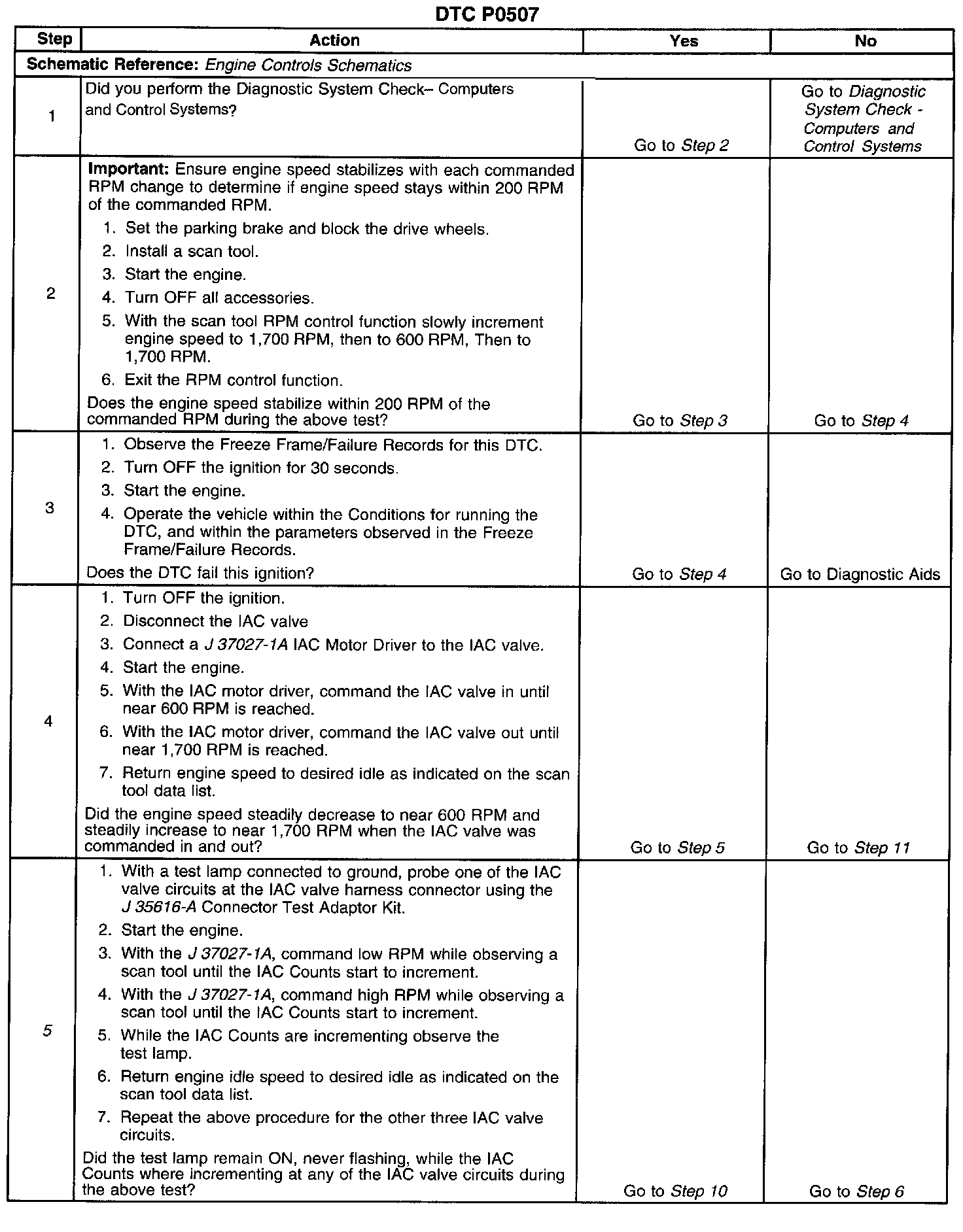 ^ A high or unstable idle condition could be caused by a non-IAC system problem that can not be overcome by the IAC valve. Refer to Symptoms - Computers and Controls Systems. Symptom Related Diagnostic Procedures