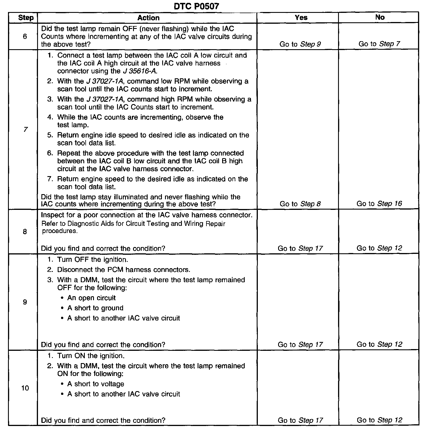 5. This test will determine the ability of the Engine Controller and IAC valve circuits to control the IAC valve.