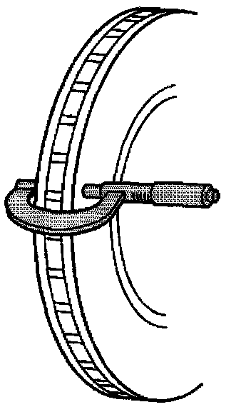 2. Using a micrometer calibrated in ten-thousands of an inch, measure and record the lowest thickness of the brake rotor at four or more points, equally spaced around the rotor.
