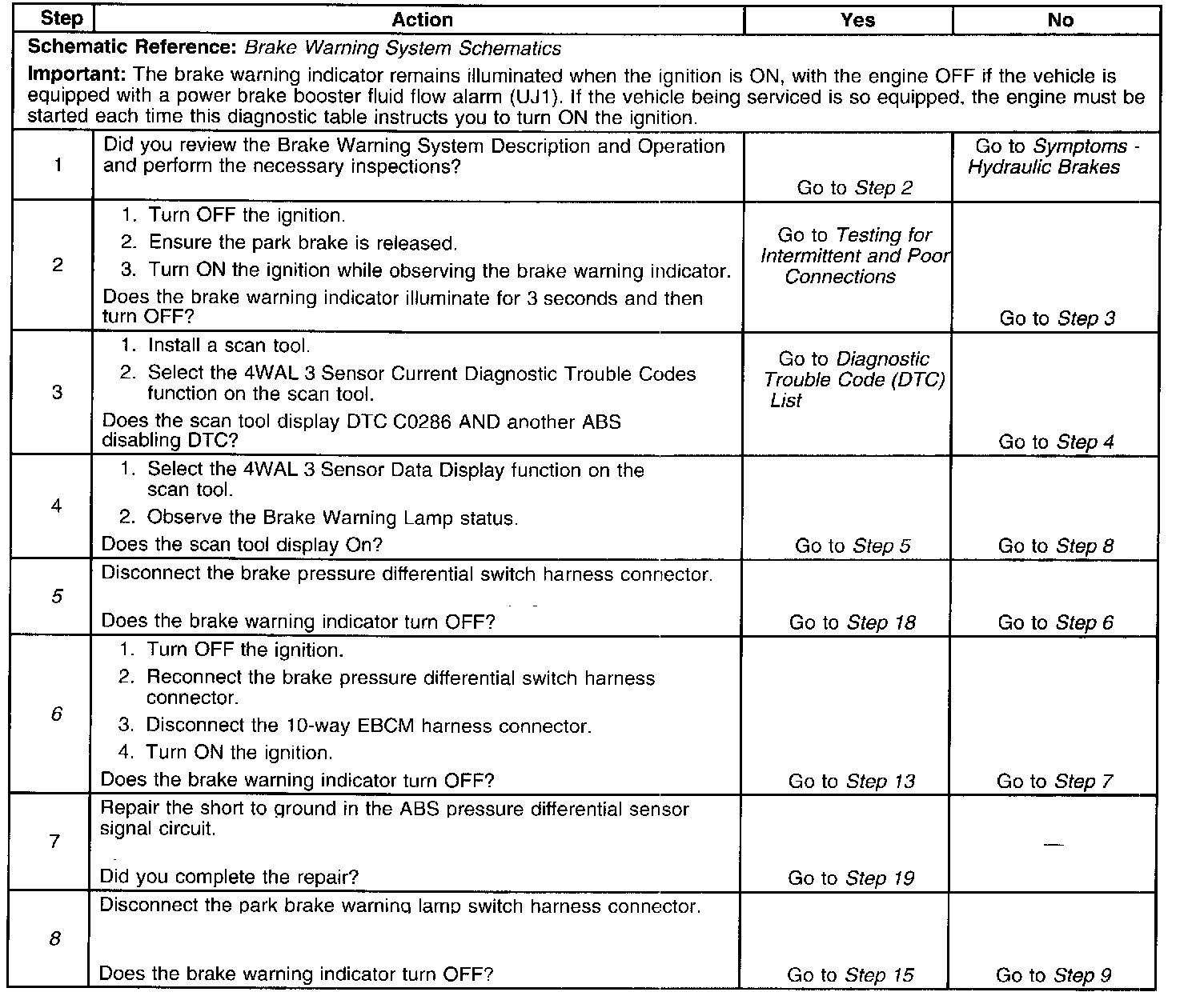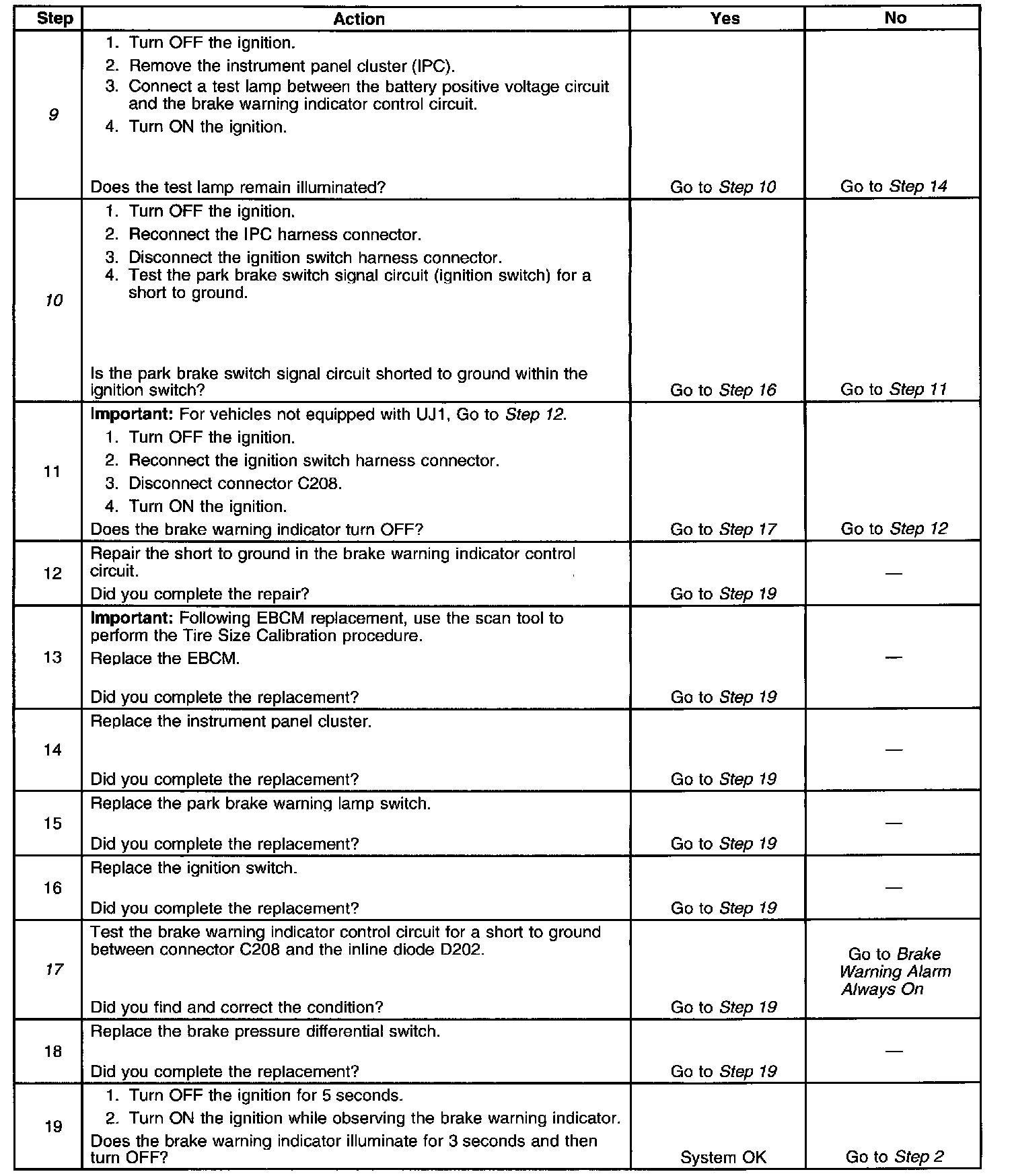 8. This step tests for a shorted park brake warning lamp switch.
