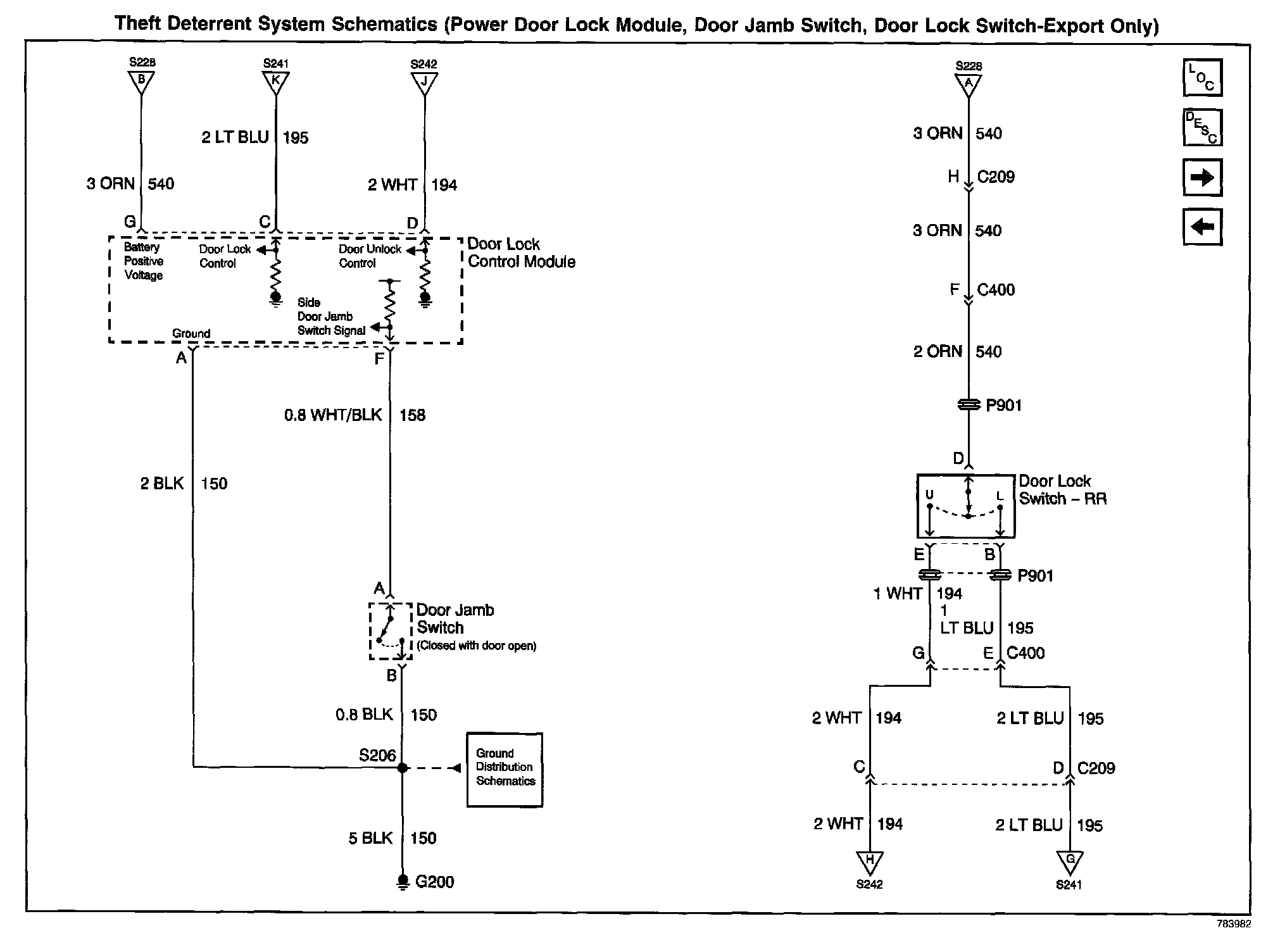 Theft Deterrent System Schematics: Power Door Lock Module, Door Jamb Switch, Door Lock Switch-Export Only: