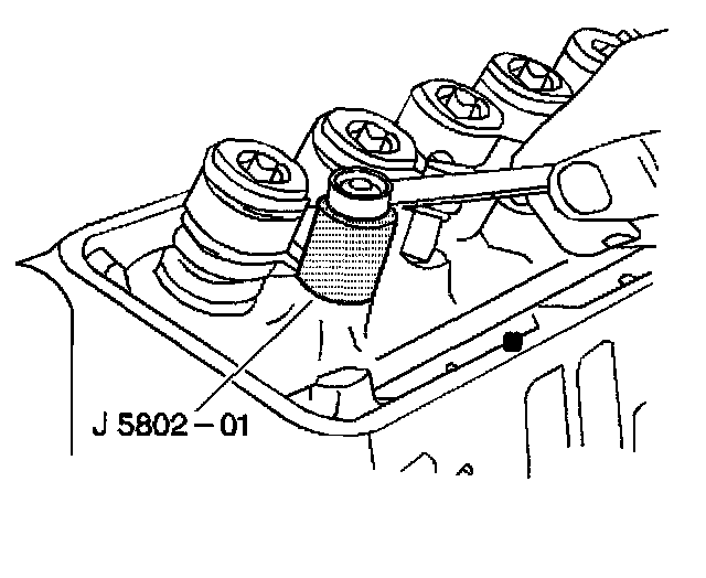 1. Place the J 5802-01 over the valve rocker arm ball stud to be removed.