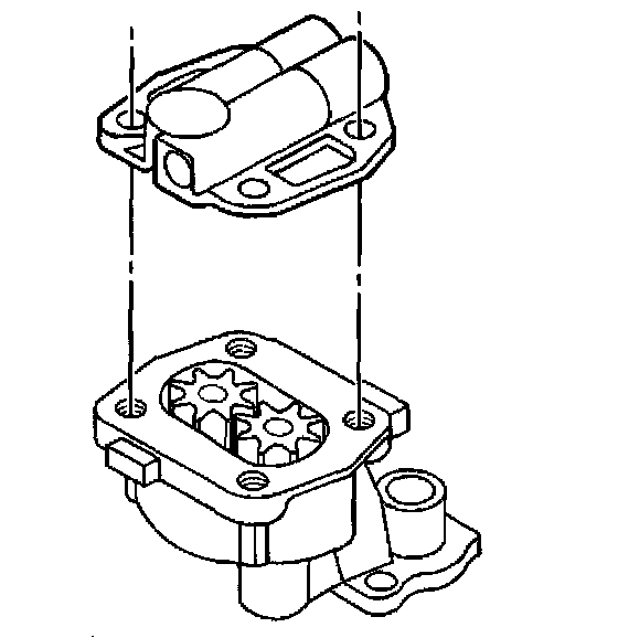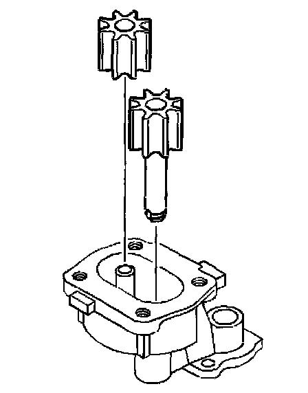 3. Apply clean engine oil GM P/N United States 12345610, GM P/N Canada 993193, or equivalent, to the oil pump drive gear, the oil pump driven gear, and the oil pump body internal surfaces.