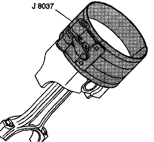 3. Install the J 8037 onto the piston and compress the piston rings.