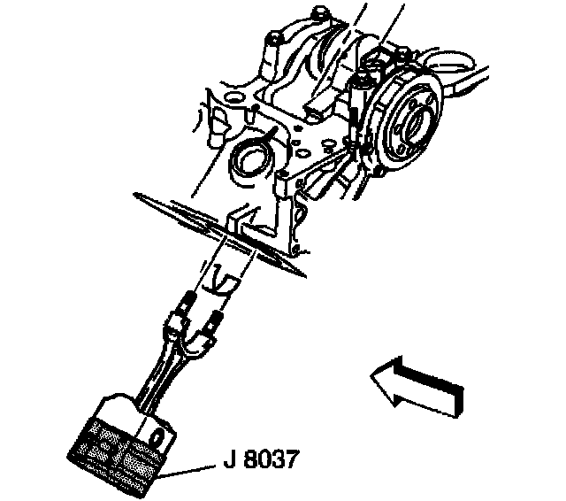 5. Install the piston and connecting rod assembly, and the J 8037 into the proper cylinder bore.