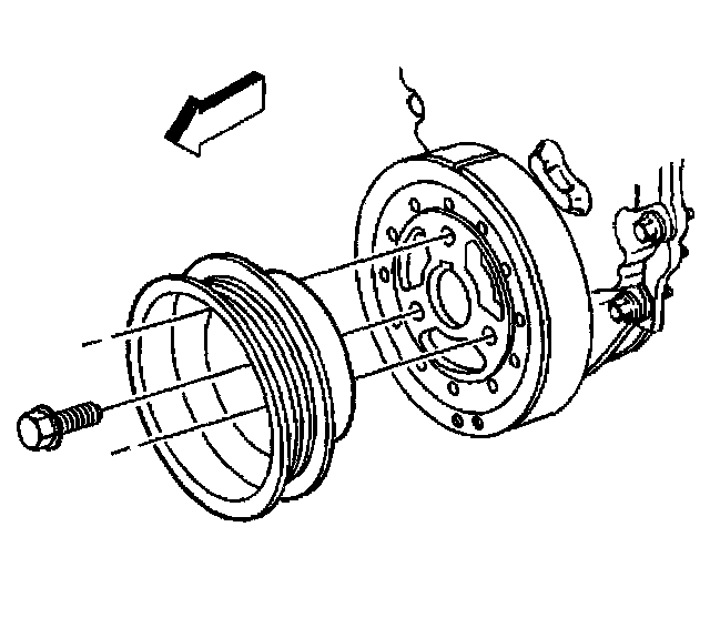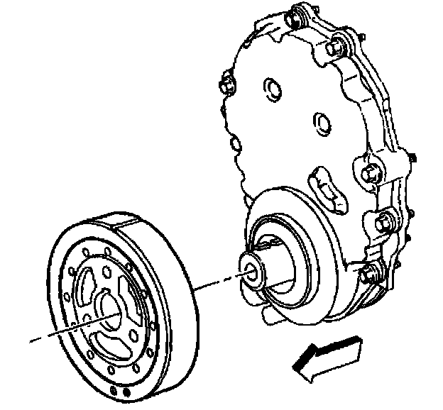 Notice: The inertial weight section of the crankshaft balancer is assembled to the hub with a rubber type material. The correct Installation procedures (with the proper tool) must be followed or movement of the inertial weight section of the hub will destroy the tuning of the crankshaft balancer.