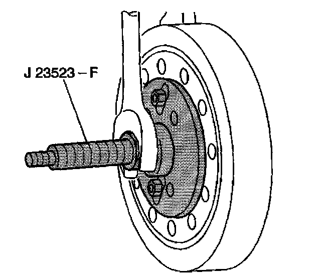 5. Use the J 23523-F in order to press the crankshaft balancer onto the crankshaft.