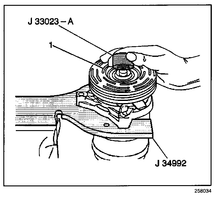 8. Install the J 33023-A on the front head of the compressor.