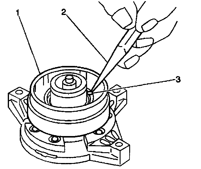12. Tighten the J 8433-3 against the puller pilot in order to remove the clutch coil (2).