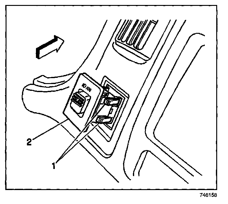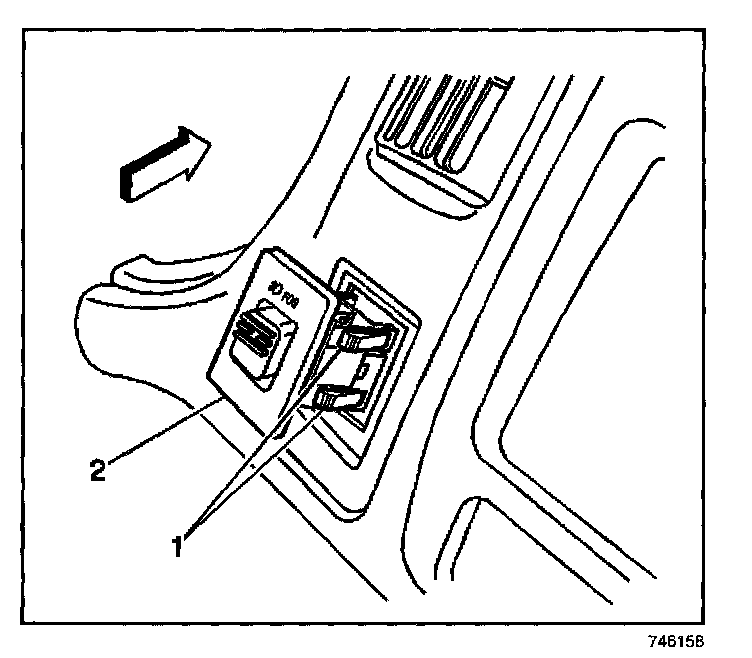 4. Remove the fog lamp switch (2) from the IP trim-plate bezel.