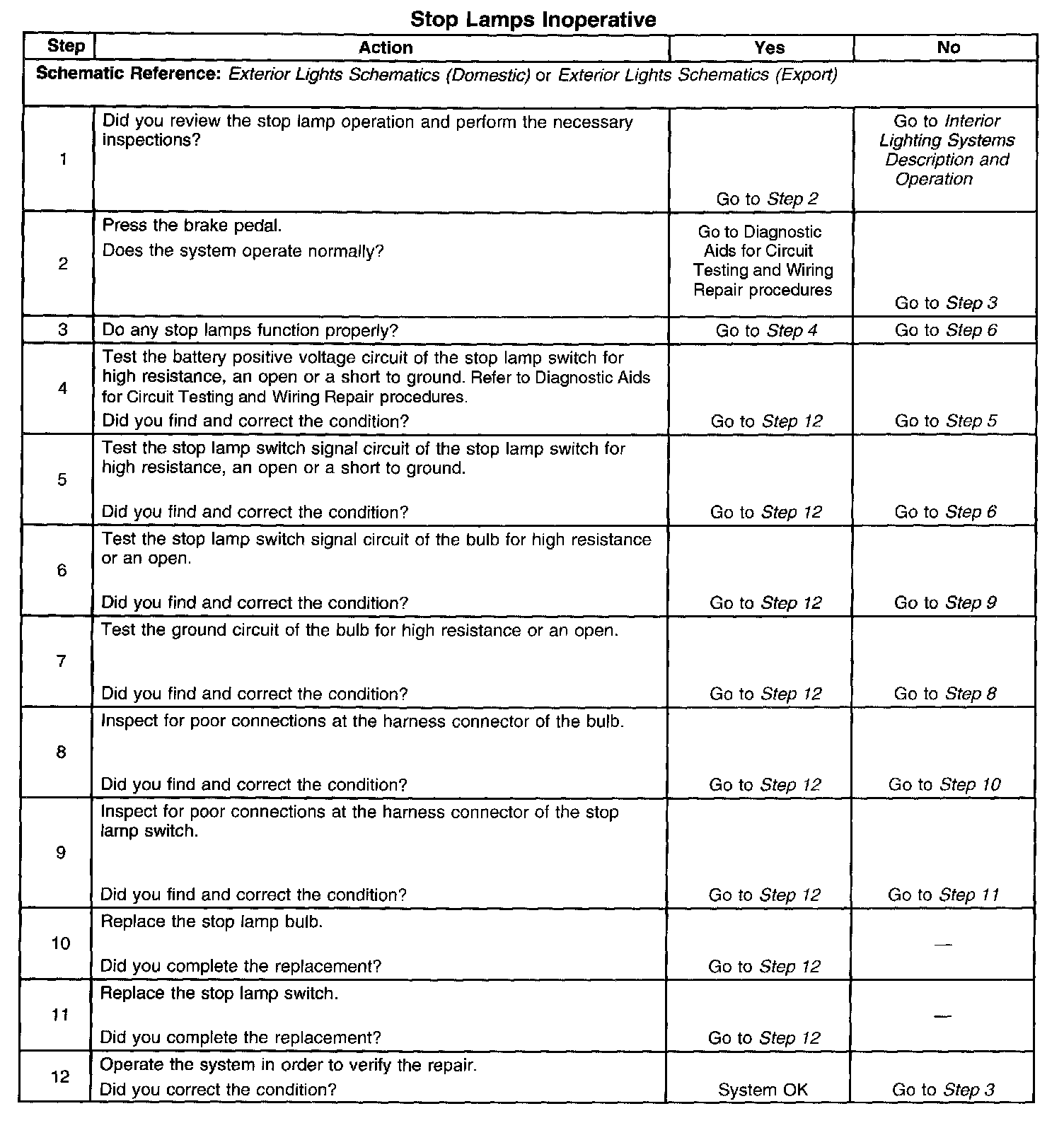 Stop Lamps Inoperative