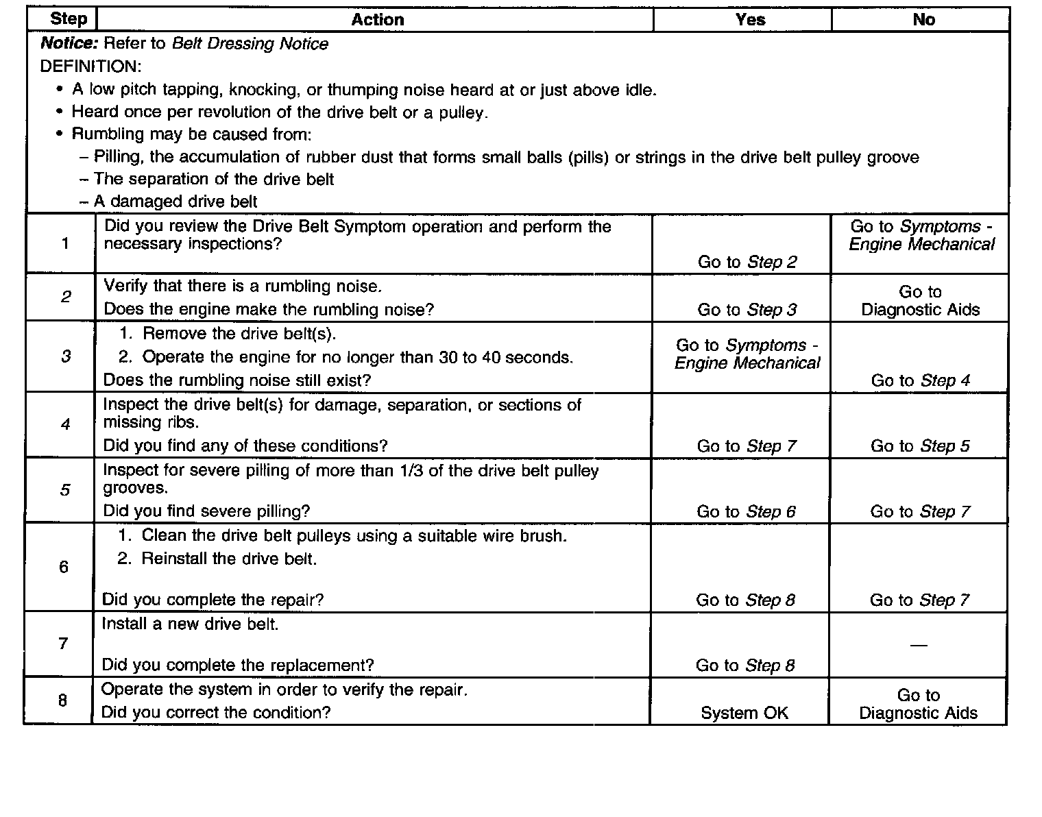 Drive Belt Rumbling DiagnosisDiagnostic Aids