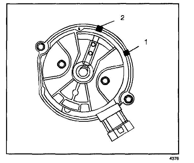 13. Place a second mark on the base of the distributor (2). This will aid in achieving the proper rotor alignment during the distributor installation.