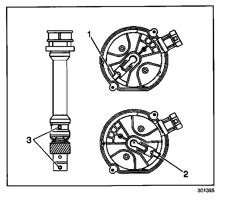 NOTE: The ignition system distributor driven gear and rotor may be installed in multiple positions. In order to avoid mistakes, mark the distributor on the following components in order to ensure the same mounting position upon reassembly: