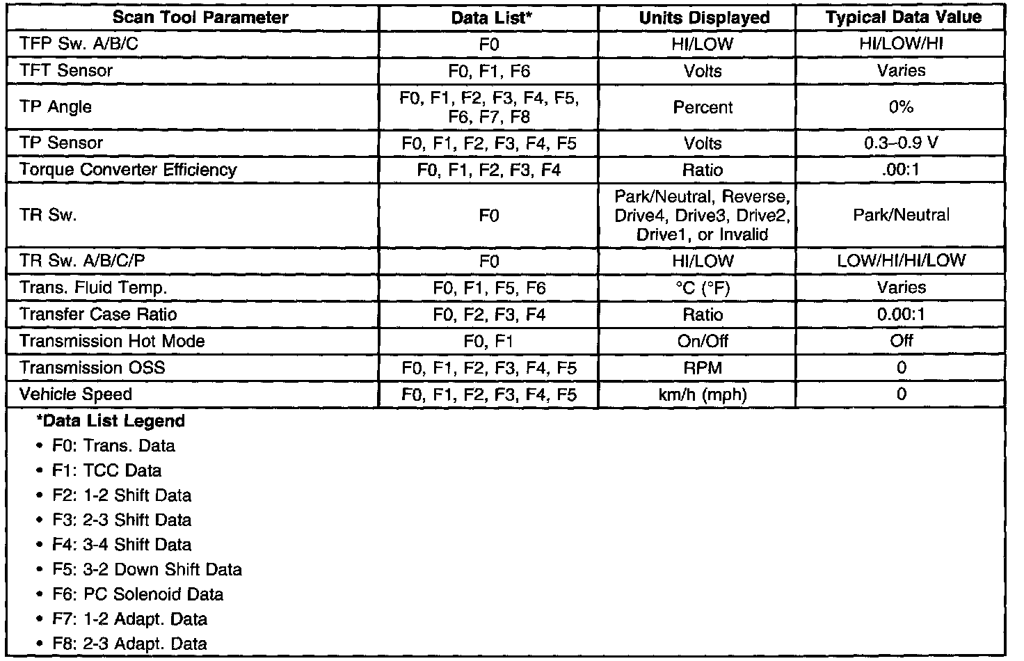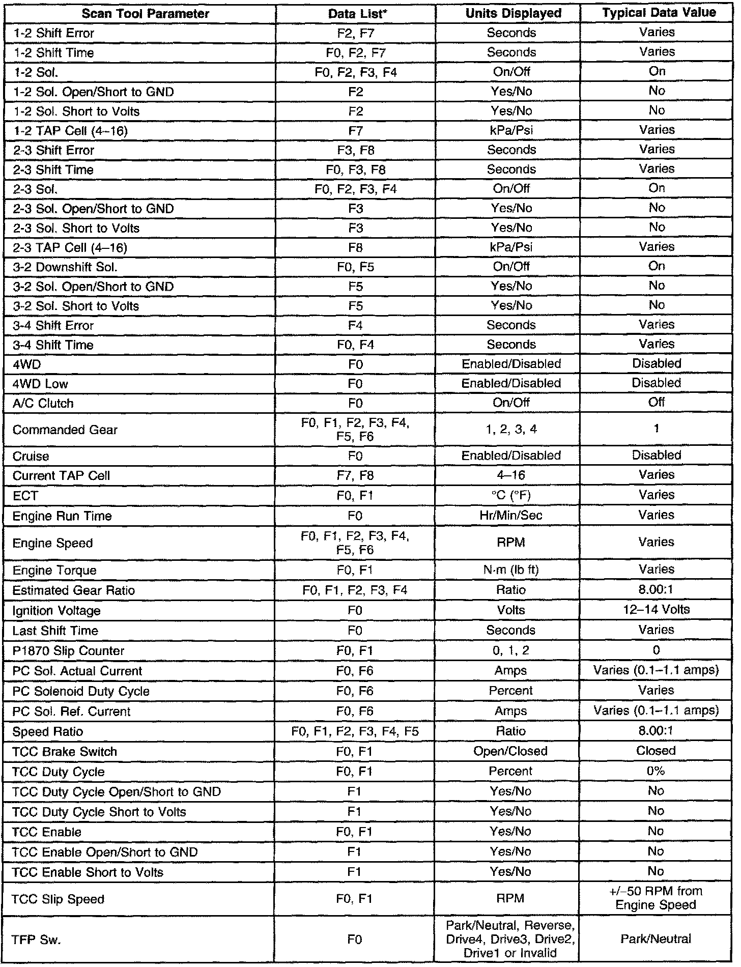 Only the parameters listed below are used for diagnosing. If a scan tool displays other parameters, the values are not recommended by General Motors for use in diagnosis.
