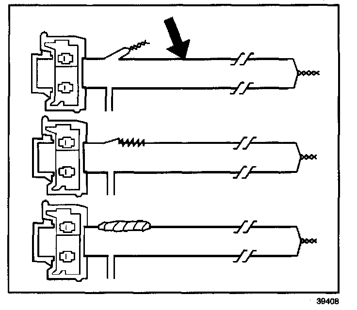 39. Separate the 2 ends of the steering wheel module deployment harness wires.
