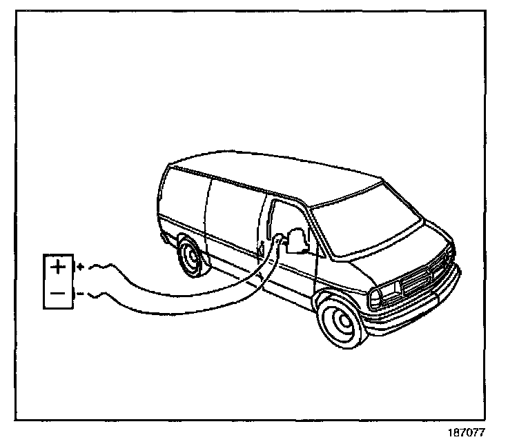 33. Place a power source, 12 volt minimum/2 A minimum (i.e., a vehicle battery) near the shorted ends of the passenger side deployment harness.