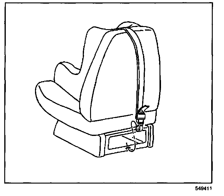 1. Install the child seat tether of the front passenger seat by accessing the top tether anchor and reaching over the back of the seat.